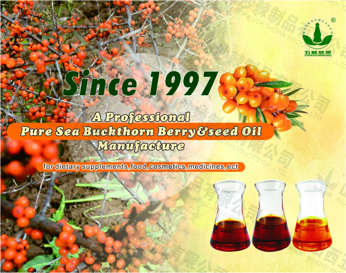 坐落于佛教圣地五臺山腳下的山西五臺山沙棘制品有限公司,是一家集食品特別是各種精制植物油、保健品、化妝品等系列產品研發、加工、生產、銷售為一體的國家級高新技術企業。研制、開發、生產出高品質的“五峰慧果”牌沙棘果油、沙棘籽油等系列精制植物油、保健品系列、凝膠糖果系列、沙棘果粉系列、沙棘原漿系列、沙棘清汁、沙棘鈣壓片糖果、沙棘傳奇小沱茶、沙棘餅茶、沙棘陳醋等產品。